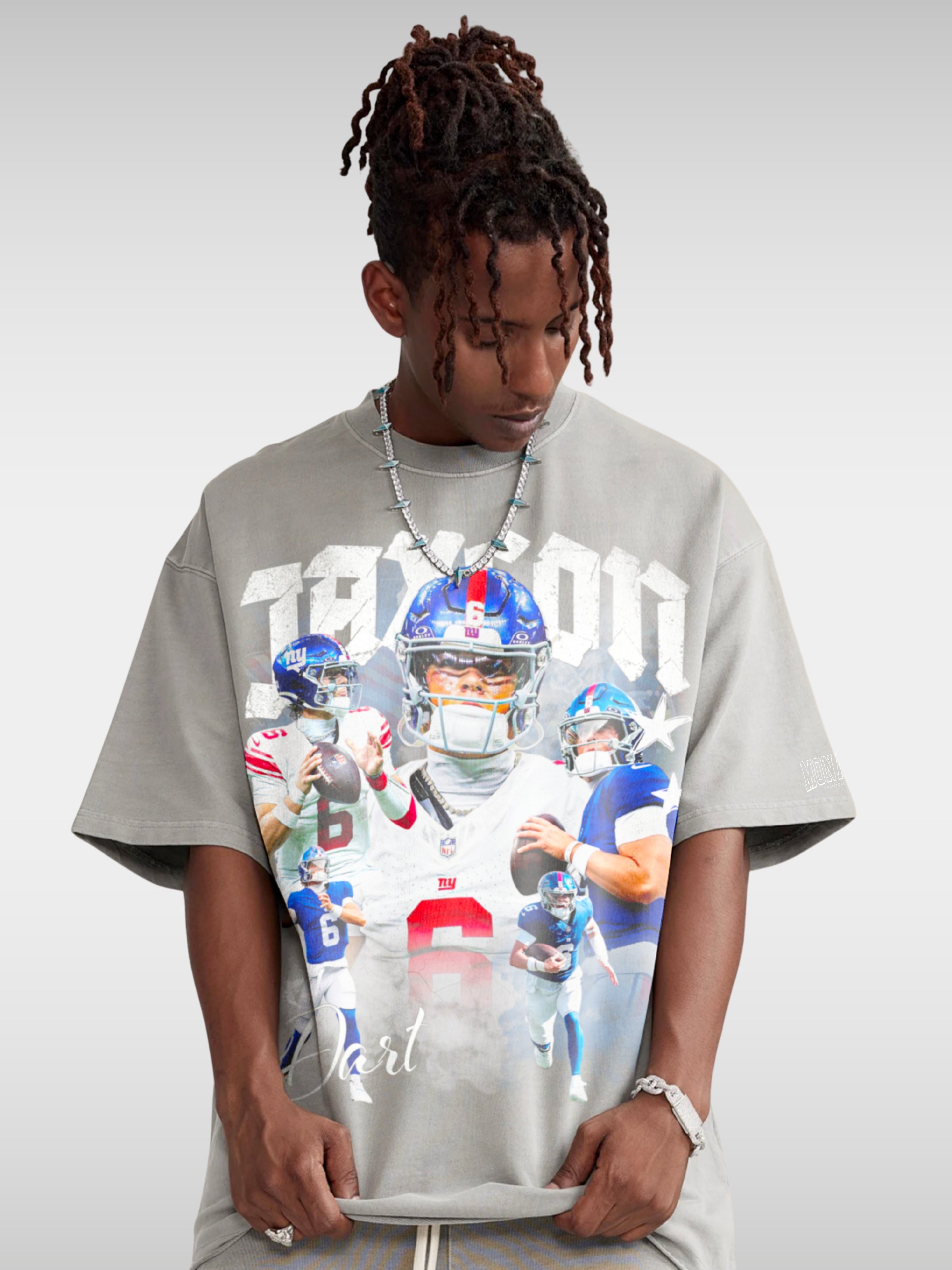 Cold eyes, no panic, just darts downfield. This tee captures Jaxson Dart in full takeover mode — stacked action shots, smoke, and star details for the ones who live for big plays and clutch moments.