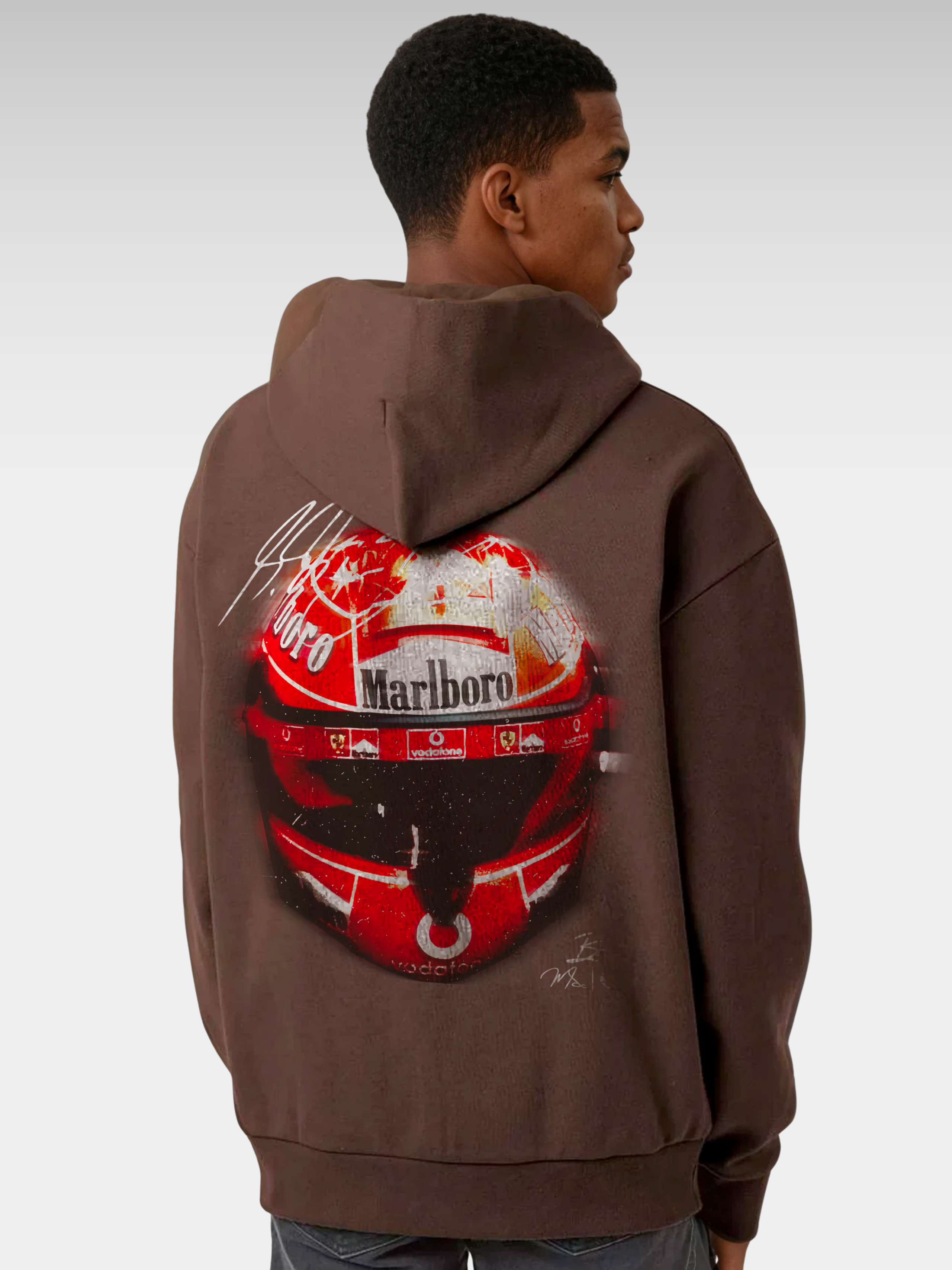 Celebrate the unmatched dominance of Michael Schumacher with this iconic helmet graphic hoodie. A tribute to speed, precision, and the eternal red of Ferrari—built for those who know greatness when they see it.