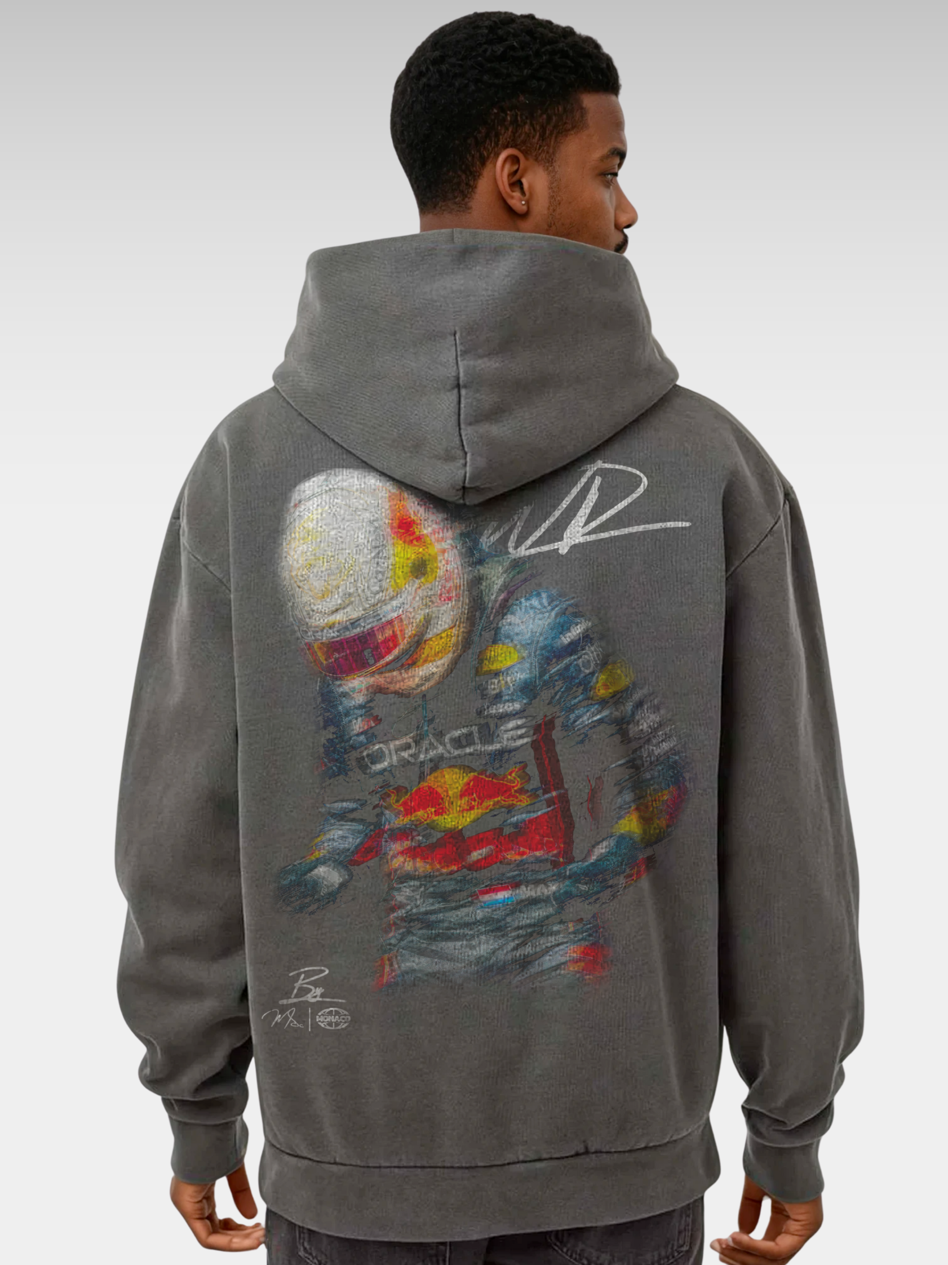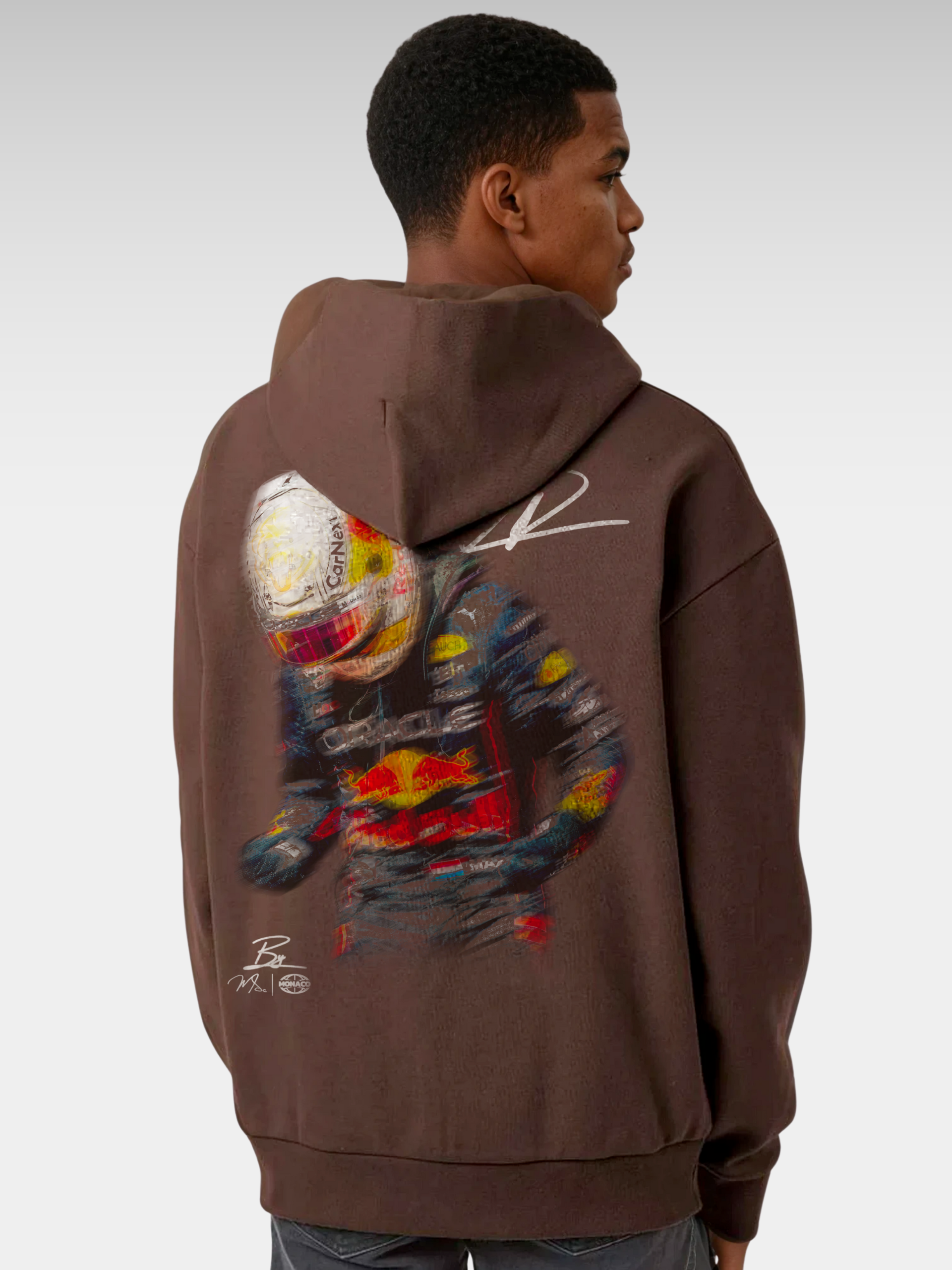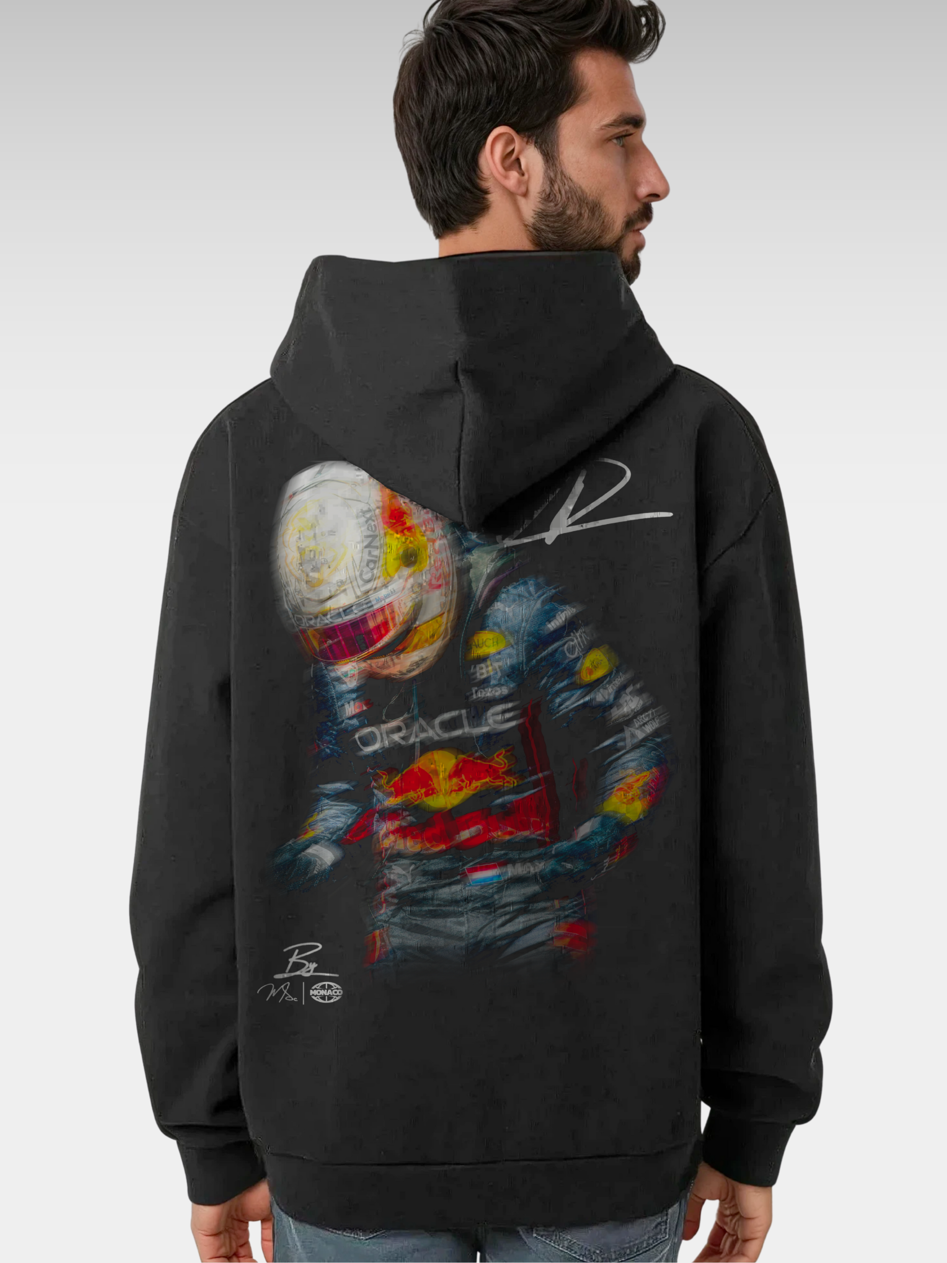 A blur of speed, power, and legacy. This hoodie captures Max Verstappen mid-motion—an homage to focus, grit, and adrenaline under pressure. Designed for those who live life in the fast lane.